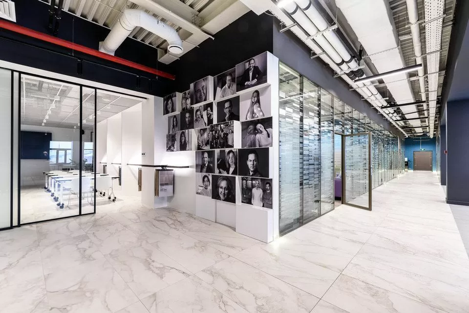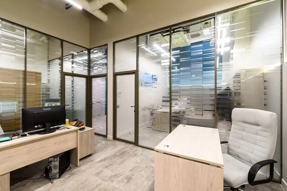 Радиусные перегородки - само по себе нестандартное решение, а подобные перегородки с двойным стеклом - настоящий эксклюзив.