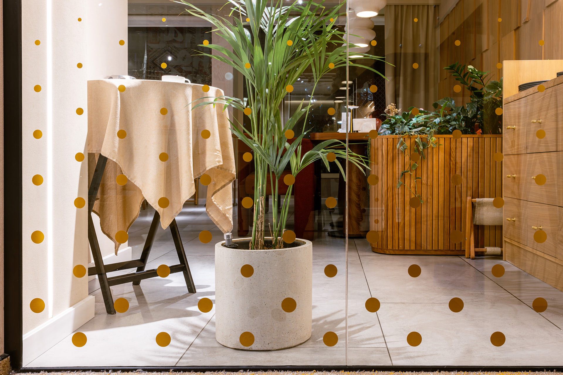 На стекло перегородок была нанесена пленка Orakal (горошек).